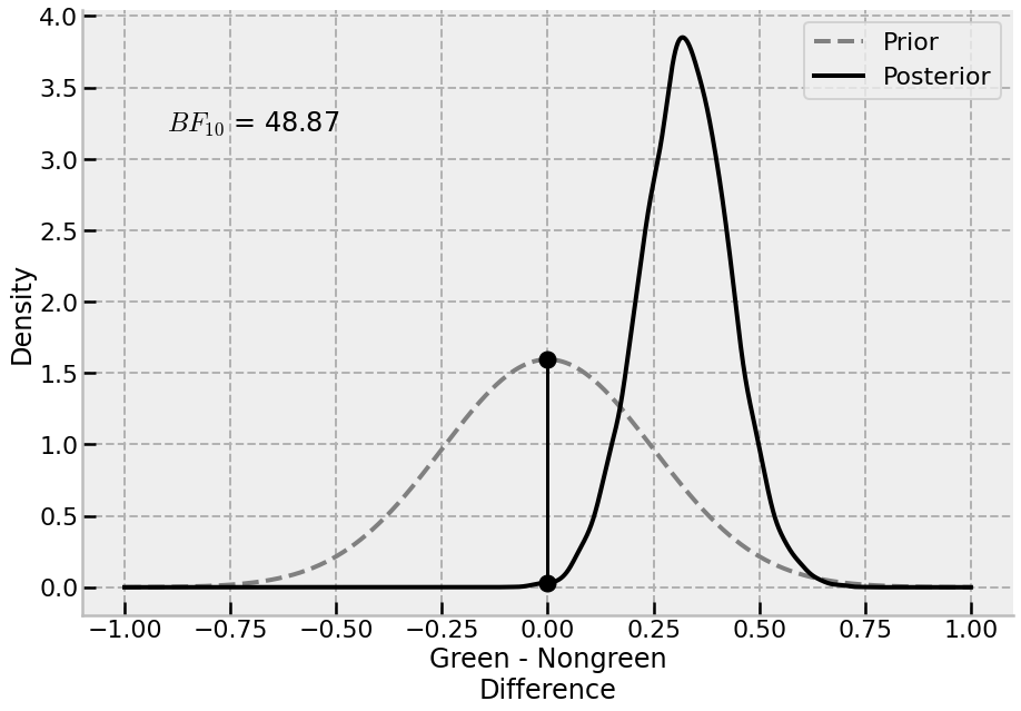 A Bayesian hierarchical re-analysis of Brough et al. (2016) for the Centre for Open Science’s Multi100 project, including a Savage-Dickey Bayes Factor.